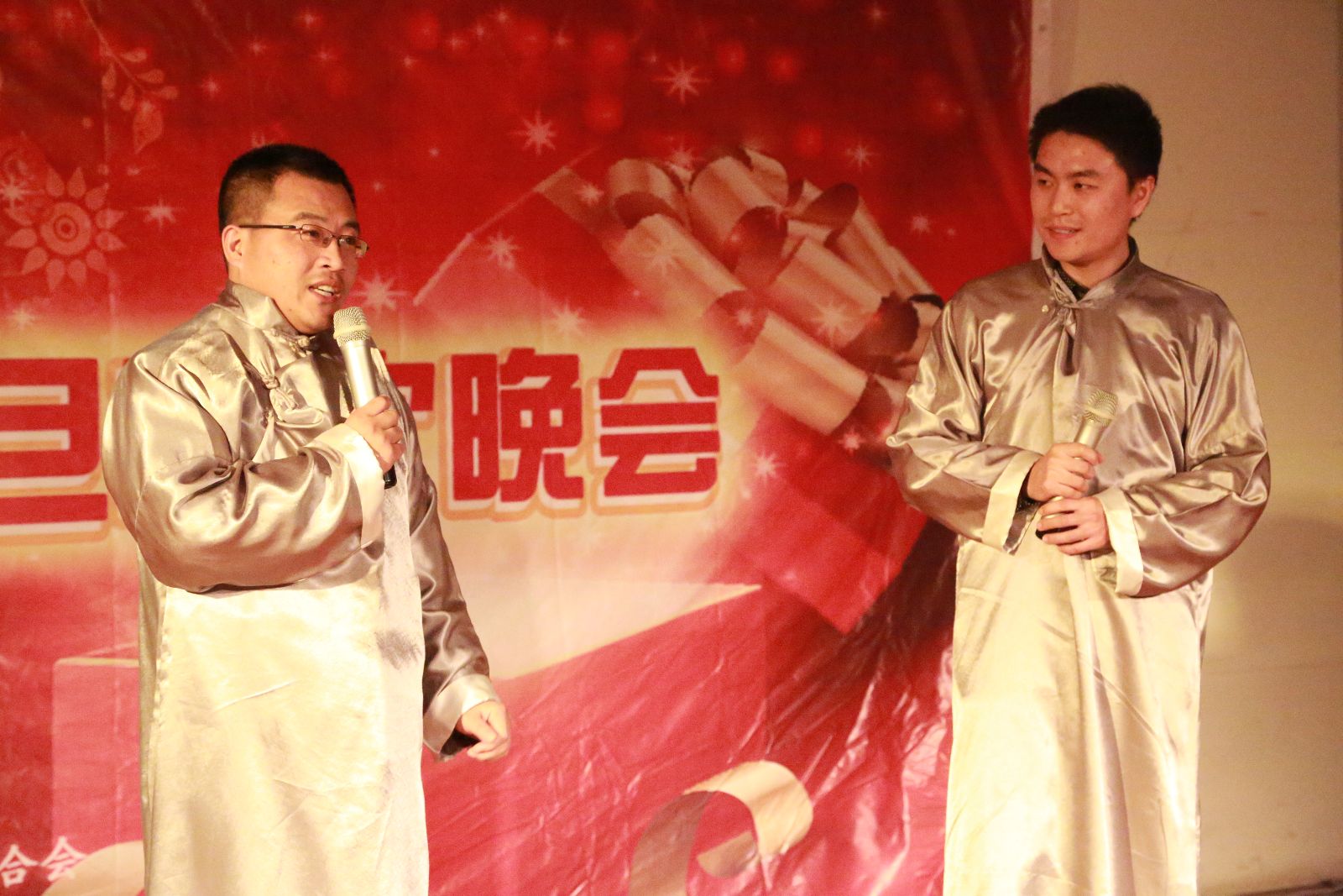 首先,2014级MBA徐振华和杨光同学给大家带来相声《穿越》,唐雪峰的横笛《春到湘江》让观众领略到传统艺术的魅力,杨晓庆和张永同学带来了令人遐想沉醉的情歌对唱《匆匆那年》,远道而来的Ora Nebenzahi教授也为在场的师生送上了祝福的歌声——《Hevenu shalom Aleichem》,意为《愿天上平安赐给你》。随后,研究生同学也带来了精彩的演出,张一萍同学和她的书法协会会员们为大家表演精彩的倒写书法;俄、泰、中三国同学共同表演了舞蹈《ROCK AND ROLL》、研究生三班表演了舞蹈《小手拉大手》充满欢快与激情;小品《企管爱情故事》和《碰瓷儿》将全场气氛推到高潮。