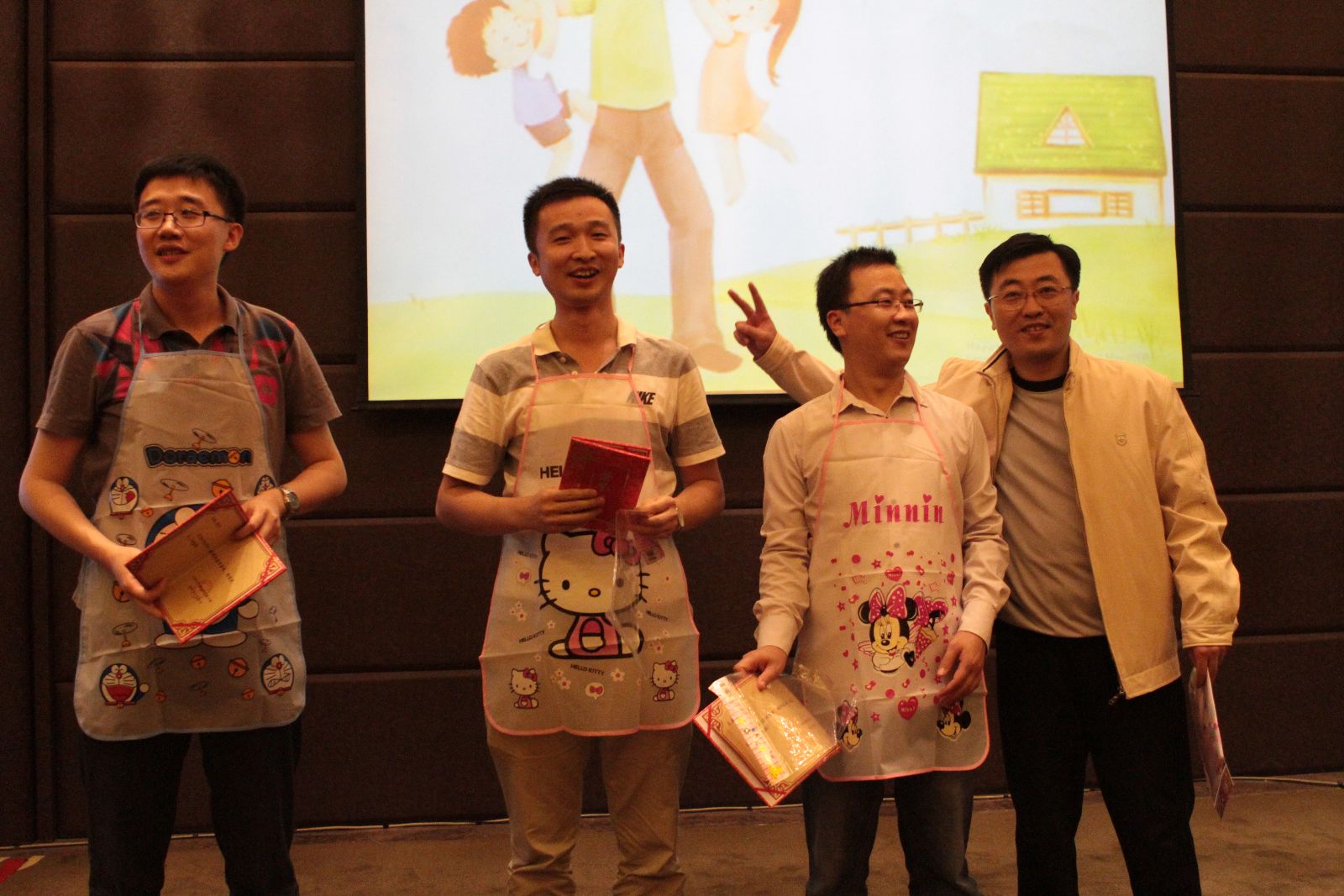 晚会开始,MBA中心办公室孙艳洁主任、孙涛教授分别代表中心和任课老师致辞,两位老师对晚会的筹备给予了充分的肯定,并给同学们送上了美好的祝愿。华丽装扮的主持人、温馨搞笑的回顾视频、劲爆的小苹果舞表演让现场汇聚成欢乐的海洋。根据每个同学的特点和一年来的表现,组委会为每位同学都量身定做了奖状、奖品和颁奖词,有为外地同学准备的“奔波求学奖”,为新婚同学准备的“甜甜蜜蜜奖”,也有为初为人父、人母同学准备的“喜当爹奖”和“英雄母亲奖”等等。伴随着颁奖环节,别出心裁的“班委时装秀”和温馨有爱的“宝宝连连看”、“猜真假”等互动游戏一次又一次将晚会推向高潮。