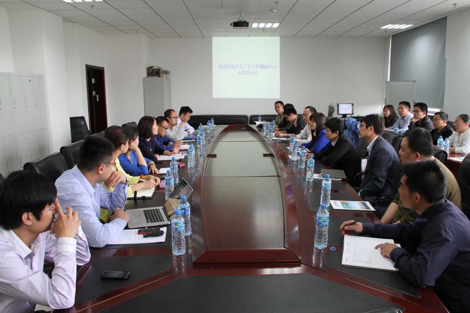 2014年5月10日, 河北工业大学经济管理学院专硕中心邵兵书记和团委贾博书记带领该校第八届MBA联合会成员来访我院MBA中心,就MBA办学及联合会工作进行了交流。
