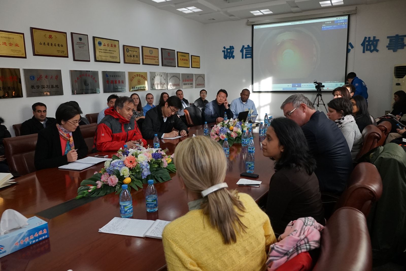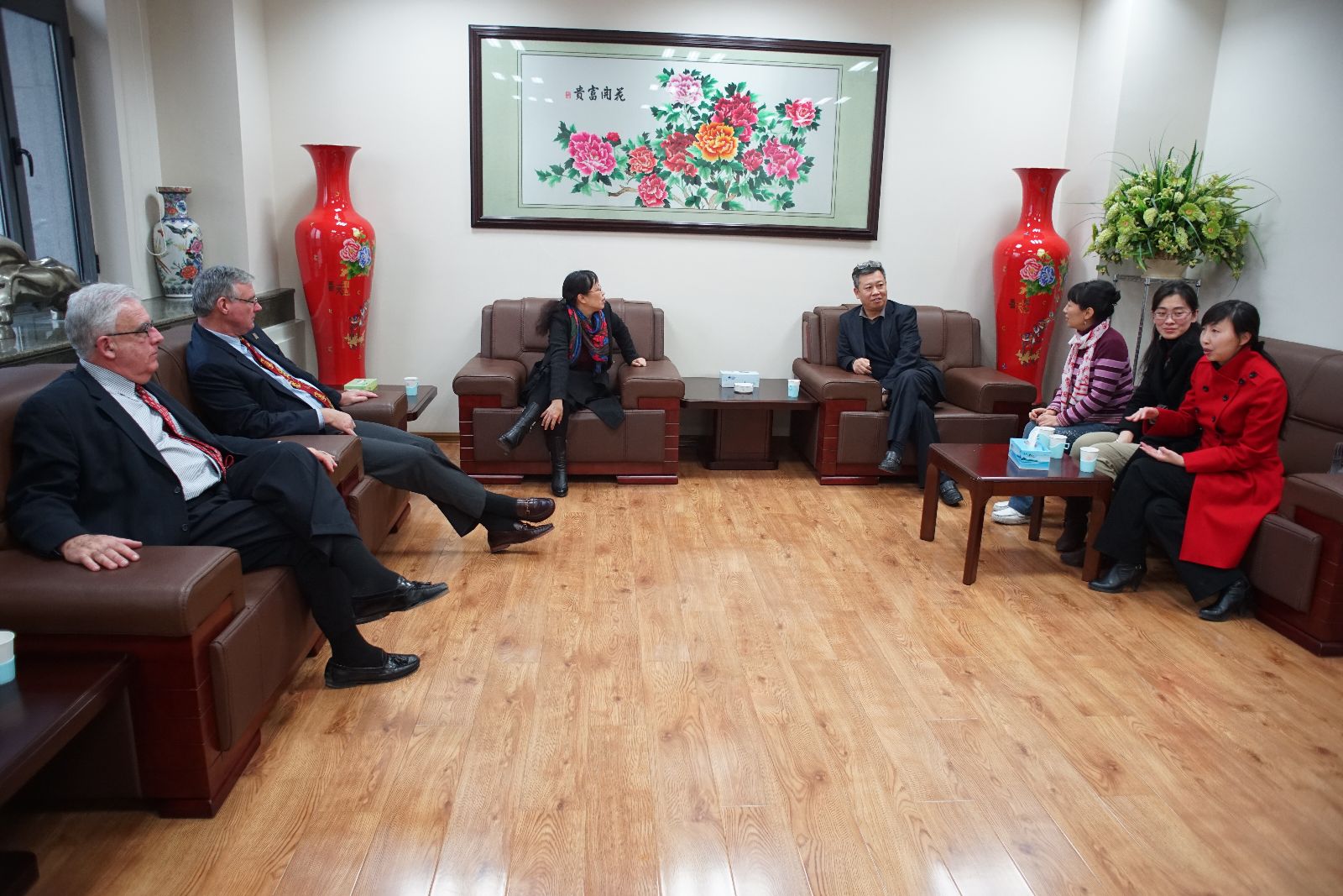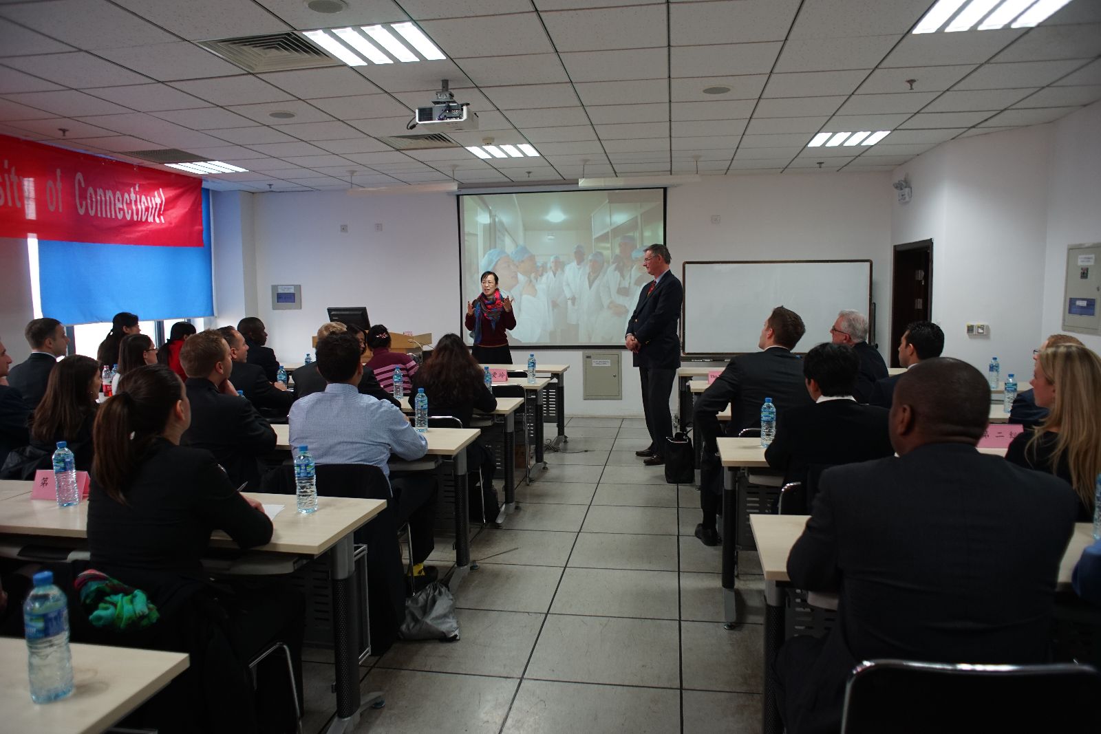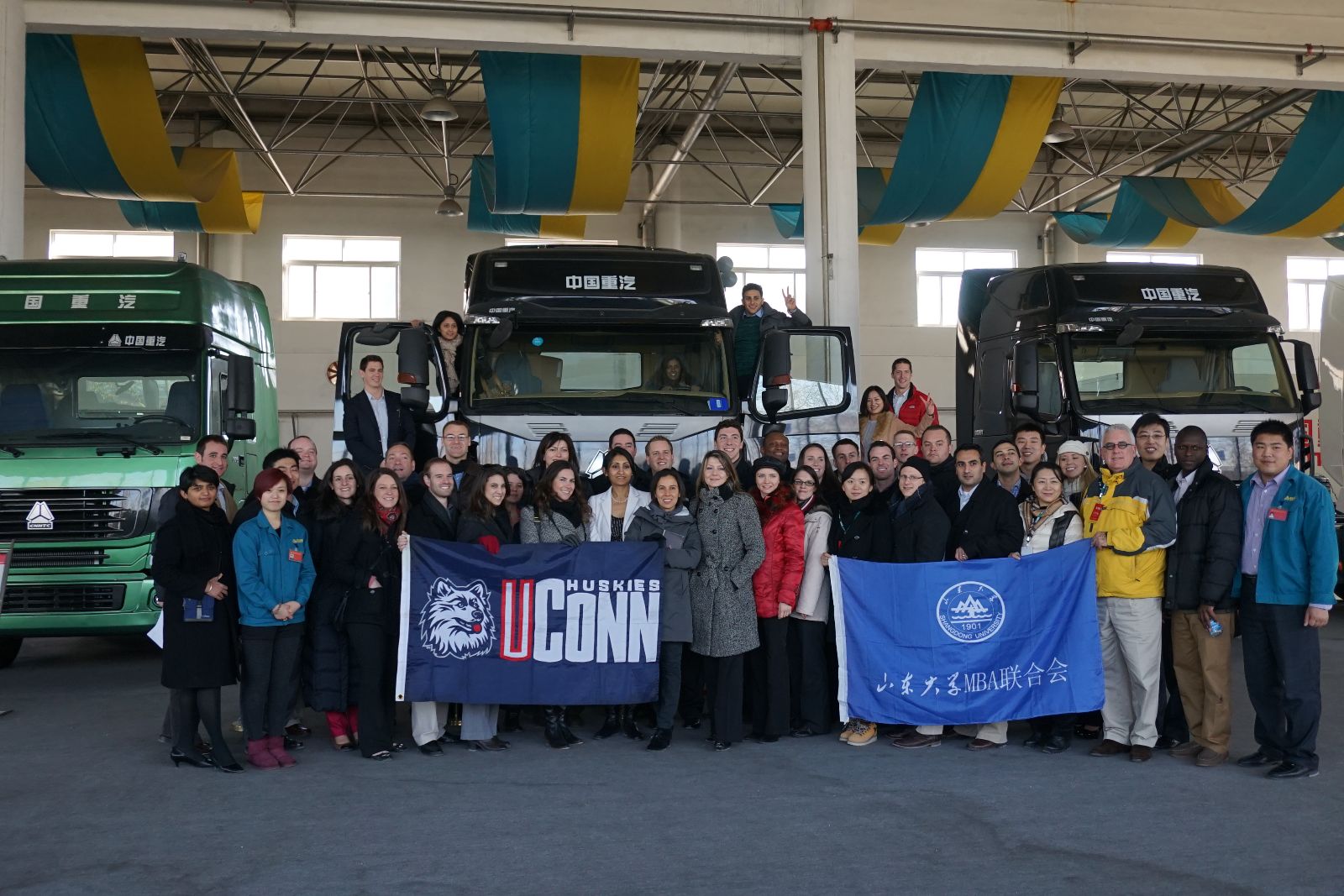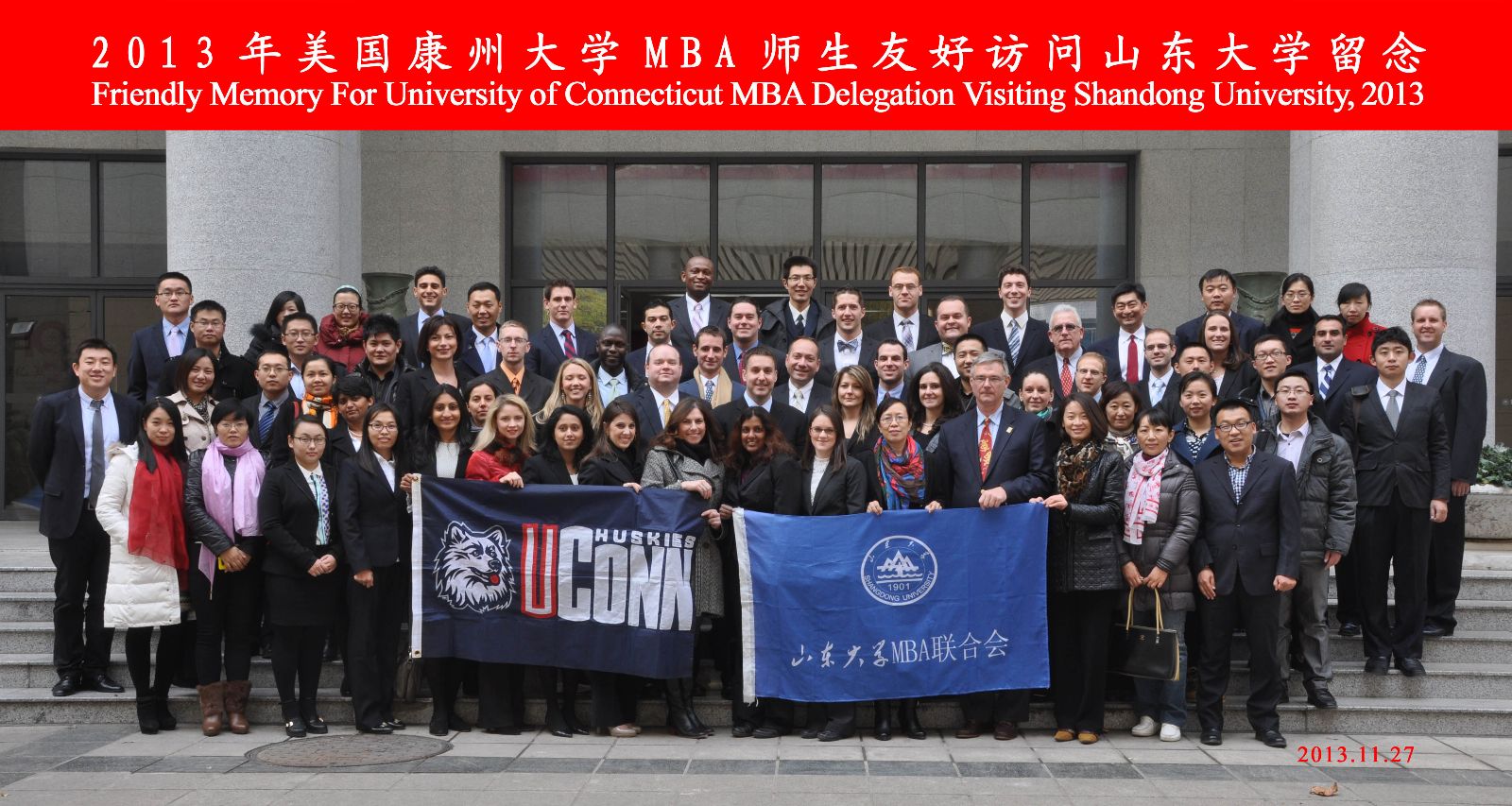 2013年11月26日, 美国康涅狄格大学管理学院Timothy Dowding和Brian Brady教授带领由37名MBA学生组成的访学团对我院进行了友好访问。访学团与我校MBA教育中心的师生进行了深入交流,并在我校师生陪同下赴桑乐太阳能有限公司、普利思矿泉水有限公司、重汽集团等山东省著名企业参观考察。