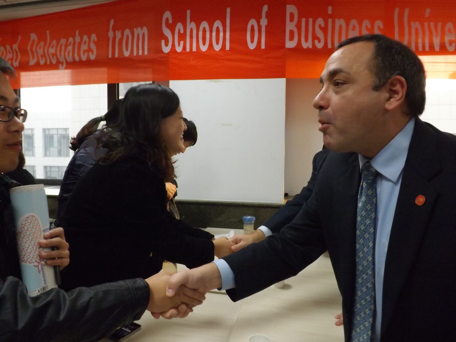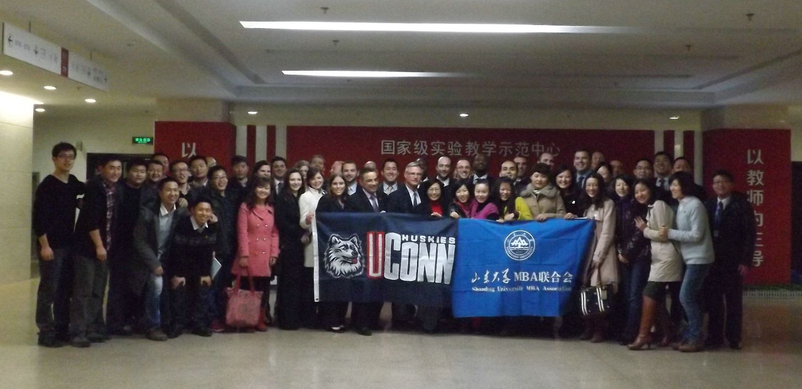 11月21日,美国康州大学Tim教授、Glenn教授率访学团一行23人访问山东大学。山东大学管理学院党委书记左金朝教授亲切接见,并与远道而来的友人一同举办MBA师生交流座谈会,会议由管理学院院长助理、MBA教育中心副主任罗新华教授主持,相沂晓副教授担任会议翻译,与会的还有管理学院外事秘书陈丹老师、MBA教育中心办公室主任石岩老师、杨华老师。