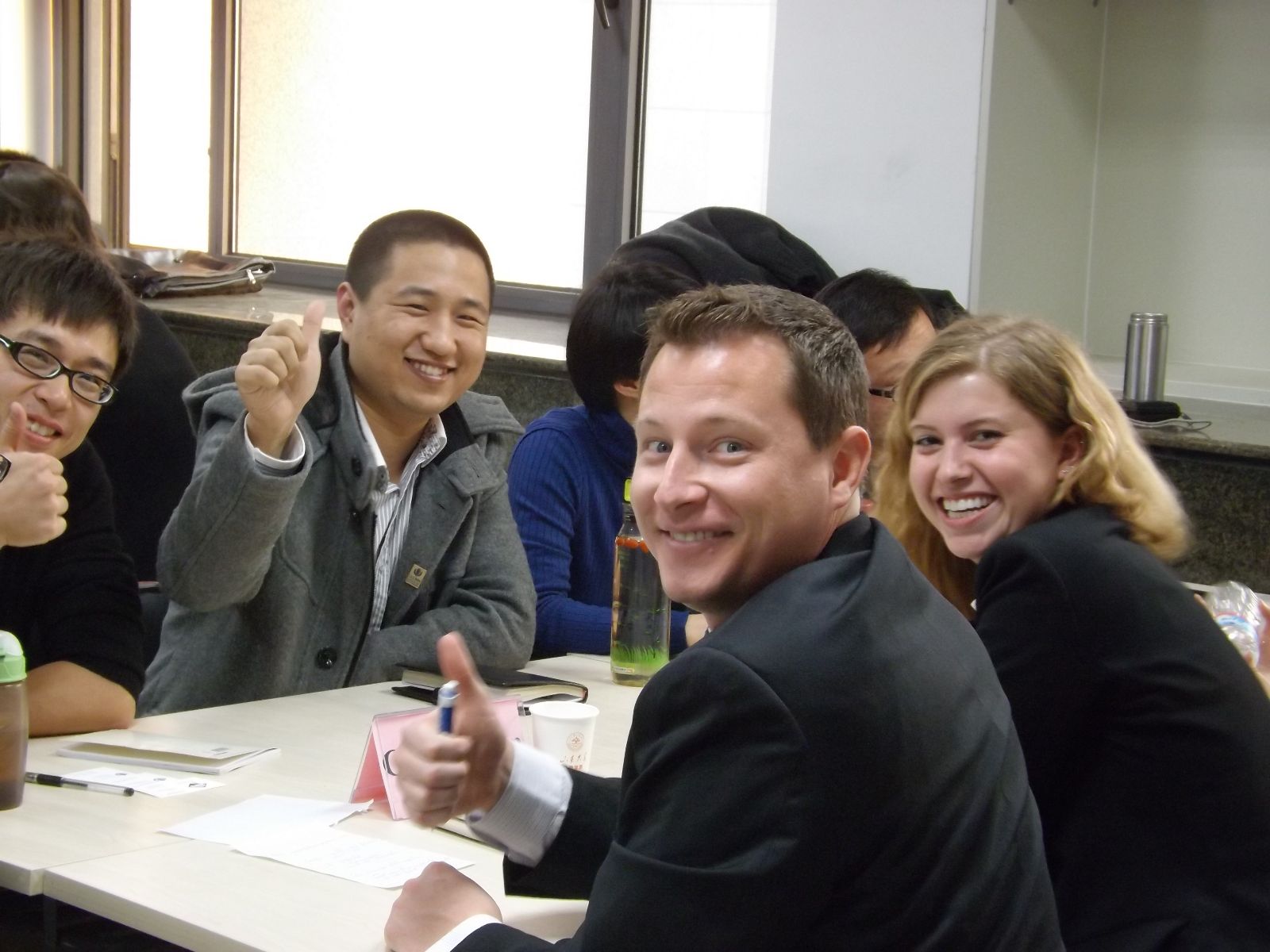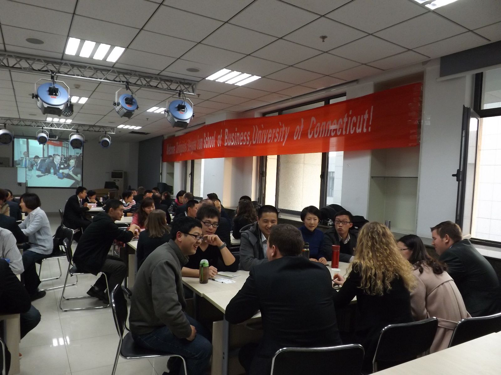 接下来,两校MBA学员分成七个小组,经过“自我介绍、案例分析、求学经历分享”三个互动环节,进行面对面的交流与沟通。同学们虽然只是初次见面,但大家很快就进入了状态,就各个环节涉及的内容侃侃而谈,现场讨论氛围逐渐高涨。康州大学访学团此行将实地考察青岛啤酒、普利斯矿泉水公司、桑乐太阳能、中国重汽四家中国企业,探究中国企业成功奥秘,其内容涉及公司发展战略、生产质量管理、商品营销策略等方方面面的内容,面对康大同学们的疑惑,山大MBA学员热情地予以一一解答。此外,两校学生还积极分享彼此的职场经验、求学感触与校园文化生活,通过积极的互动与交流,双方同学都感到受益匪浅。