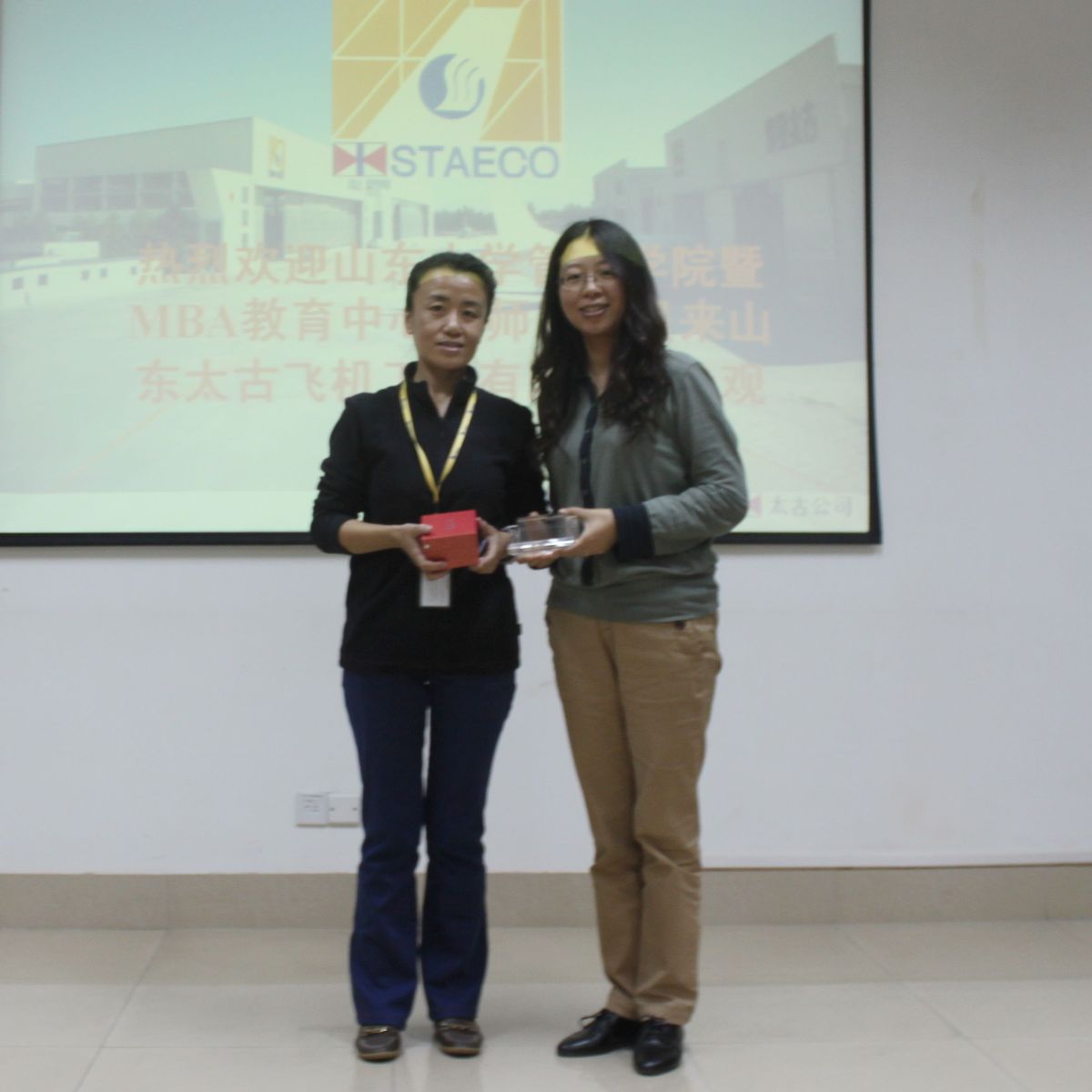 2012年10月11日,在12级四班蒋莘同学的积极协调争取下,MBA教育中心组织11级、12级39名师生走进山东太古飞机工程公司,亲身感受山东太古“精致维修、细节管理”的公司文化,实地体验太古人对飞机维修事业的态度——“精益求精,无微不至”。
