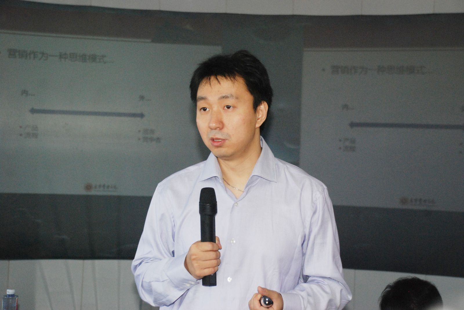 张影教授采用幽默风趣的语言,与同学们在轻松互动中,让大家对“上帝”有了更深的认识。深入浅出的告诉大家如何去识别潜在的顾客需求, 从而如何用适当的方式去满足这些需求。从认识顾客需求的差异化入手,在此基础上讨论了如何进行不同的产品设计从而满足这些差异化的需求。