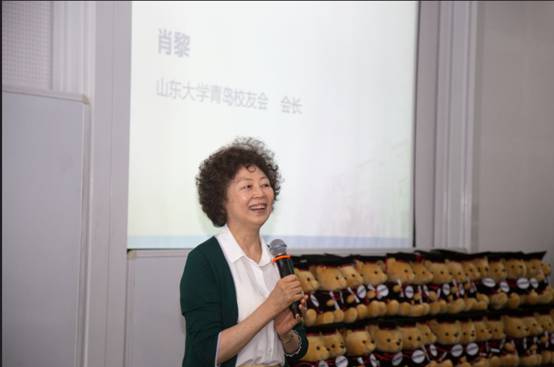 山东大学青岛校友会主席肖黎女士代表山东大学青岛校友会为毕业生们送上寄语,祝贺同学们顺利毕业,并向刚毕业的新校友介绍了青岛校友会的情况。她表示:非常欢迎同学们加入校友会,成为校友大家庭的一员。