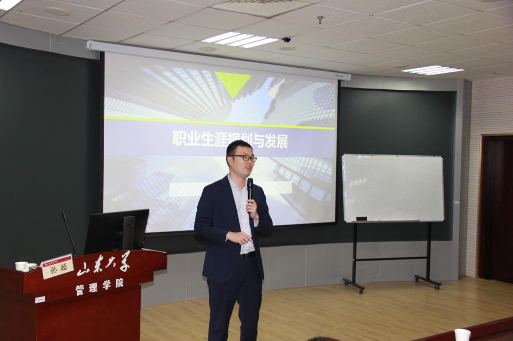 山东大学MBA“齐道儒商大讲堂”之职业生涯规划与发展讲座于12月7日晚在山东大学中心校区知新楼B座603室举办。本次讲座由MBA教育中心副主任刘冰教授主持,山东大学校友企业汉哲管理咨询(北京)股份有限公司联席CEO孙超做主讲嘉宾。