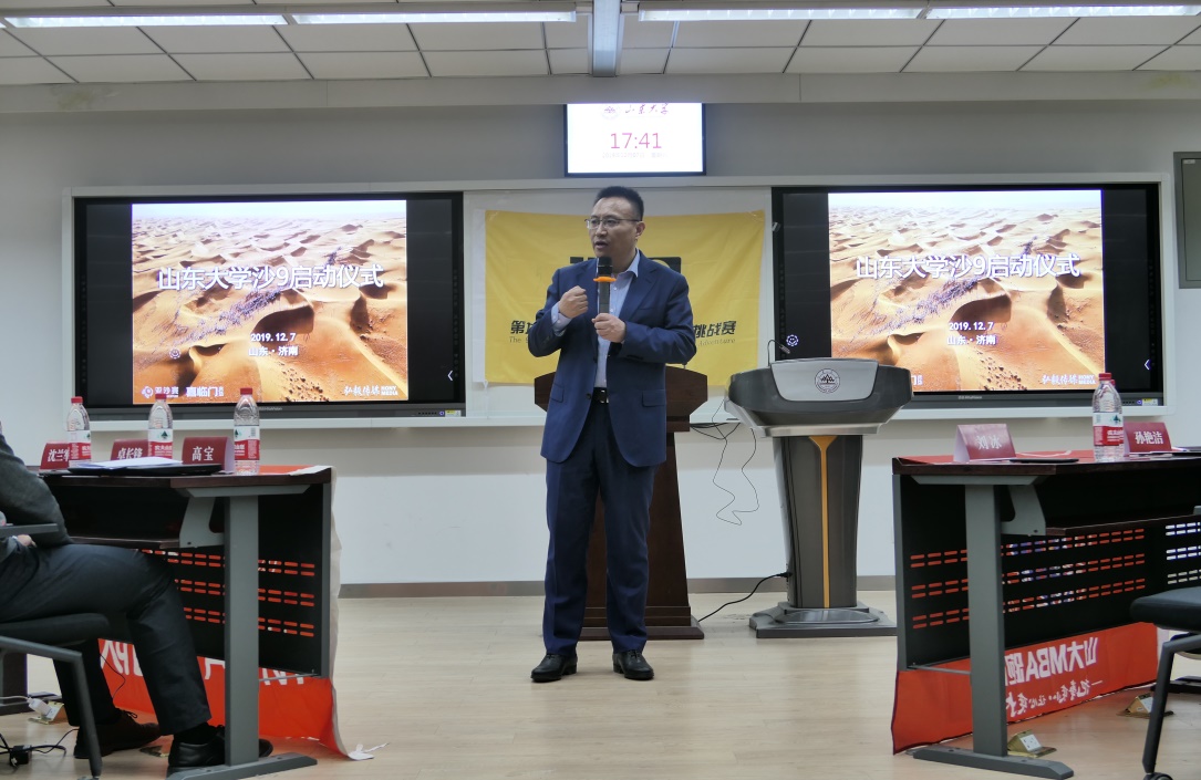 2019年12月7日晚,第九届亚太地区商学院沙漠挑战赛(简称“沙9”)启动仪式在山东大学中心校区信息楼B301教室顺利举行。山东大学MBA教育中心副主任刘冰教授出席活动并讲话,MBA教育中心办公室主任孙艳洁老师、MBA教育中心肖辉老师,亚沙组委会代表高宝、卓长锋,山大往届沙友及部分MBA同学参加活动。本次活动由山东大学“沙9”领队宁大磊主持。