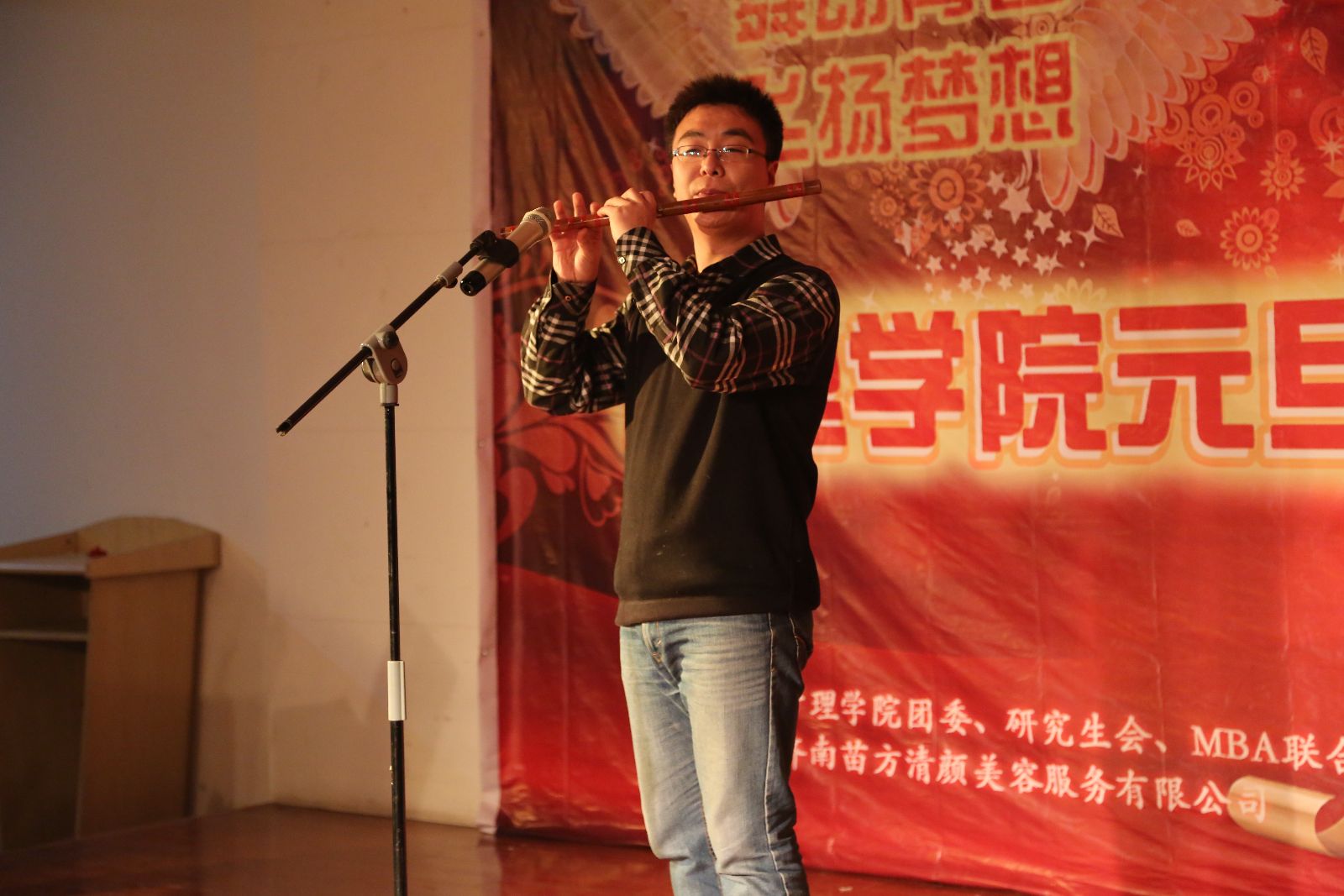 首先,2014级MBA徐振华和杨光同学给大家带来相声《穿越》,唐雪峰的横笛《春到湘江》让观众领略到传统艺术的魅力,杨晓庆和张永同学带来了令人遐想沉醉的情歌对唱《匆匆那年》,远道而来的Ora Nebenzahi教授也为在场的师生送上了祝福的歌声——《Hevenu shalom Aleichem》,意为《愿天上平安赐给你》。随后,研究生同学也带来了精彩的演出,张一萍同学和她的书法协会会员们为大家表演精彩的倒写书法;俄、泰、中三国同学共同表演了舞蹈《ROCK AND ROLL》、研究生三班表演了舞蹈《小手拉大手》充满欢快与激情;小品《企管爱情故事》和《碰瓷儿》将全场气氛推到高潮。