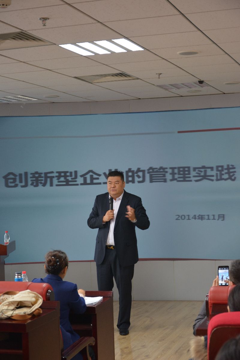 2014年11月9日下午,山东大学中心校区知新楼B603人头攒动,气氛热烈,在管理学院孙卫敏教授的盛情邀请下,2013级MBA二班及部分本科生迎来了山东鼎好餐饮集团董事长韩震先生,做题为《创新性企业的管理实践》分享报告。