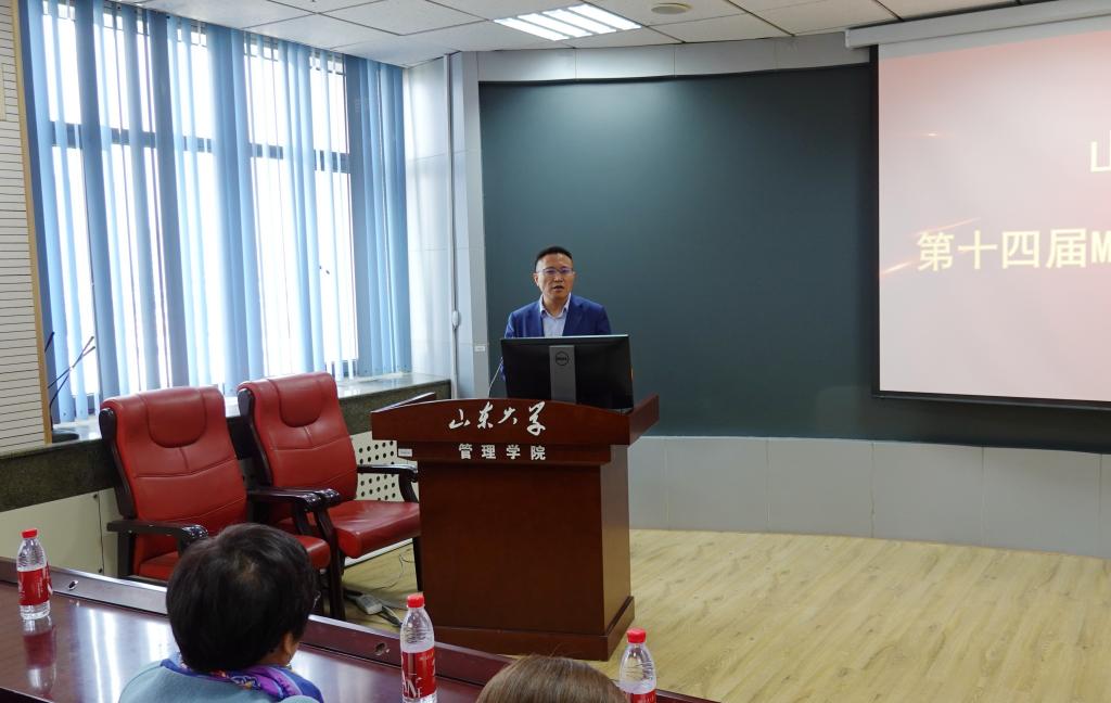 刘冰教授以“魏武挥鞭,东临碣石有遗篇,萧瑟秋风今又是,换了一届”开篇,详细阐述了MBA教育的愿景、使命、价值观,并通过介绍“MBA”的具体含义指明在校MBA学生如何实现价值与目标,M—Motivation,动机与愿景;B—Behavior,职业生涯管理;A—Achievement,收获。他指出,MBA的学生工作离不开MBA联合会的协作,山东大学MBA联合会换届是MBA教育中薪火相传的大事。MBA联合会组织各项活动,即加大了师生之间的互动,又加强了MBA学生的实践能力培养,同时加深了学生对学校的认同感、归属感,极大促进了MBA教育的发展。下一步,要继续发扬联合会在校内师生间的影响力,进一步推动山东大学MBA教育良好、有序发展,做好沟通学校、老师、学校的有效桥梁,为相关活动的顺利开展提供可靠保证。